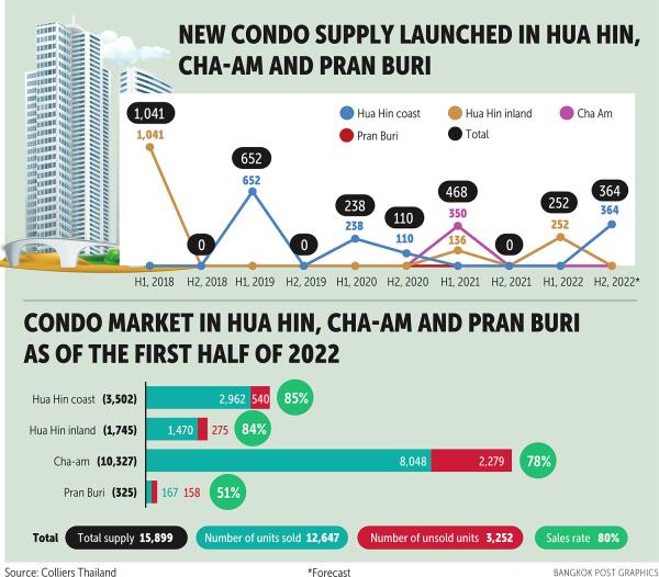 2022年上半年,华欣、查岩和普朗武里的新销售公寓数量为500套,是自2019年上半年(986套)以来的最高水平。