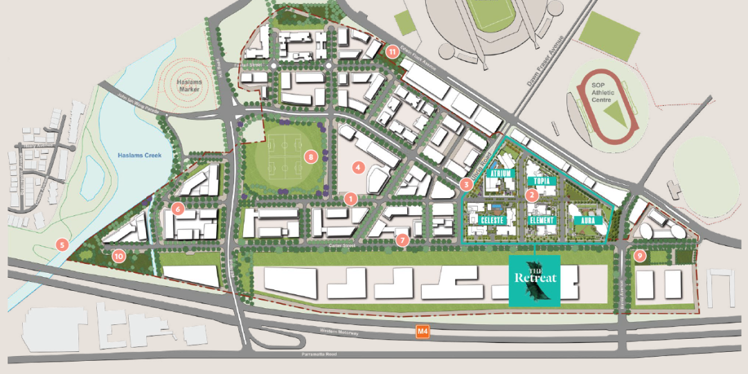 Celeste位于悉尼西区超大社区Carter Street新城(Carter Street Precinct)的规划。Carter Street新城位于Lidcombe,紧靠悉尼奥林匹克公园。在新州政府的全新规划之下,社区将拥有12000平米的商铺、预备1.88公顷的土地打造新学校、占地3公顷的公园绿地和社区中心,并和Sydney Metro West铁路线无缝连接。
