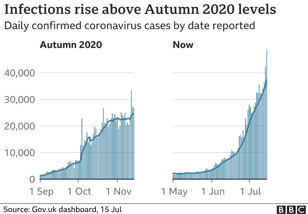 与此同时,英国新增了近 50,000 例新病例,这也是自今年1月以来的最高单日数字。