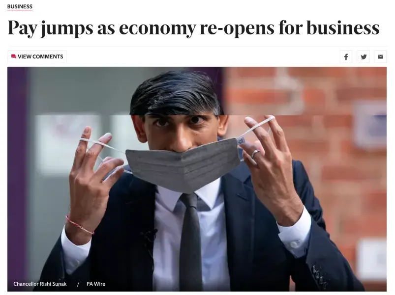 随着英国的逐步解封,就业市场开始复苏并出现职位空缺的情况,因此也刺激了薪资的增长。