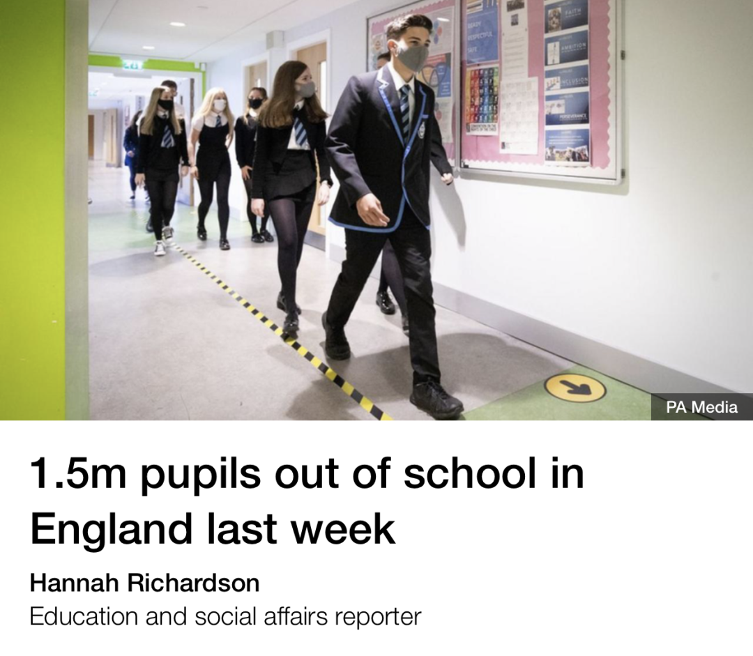 全国校长协会副秘书长尼克布鲁克表示,出勤数据“令人沮丧”,他说:“本周,由于新冠,我们再次看到缺课的学生人数进一步增加。”