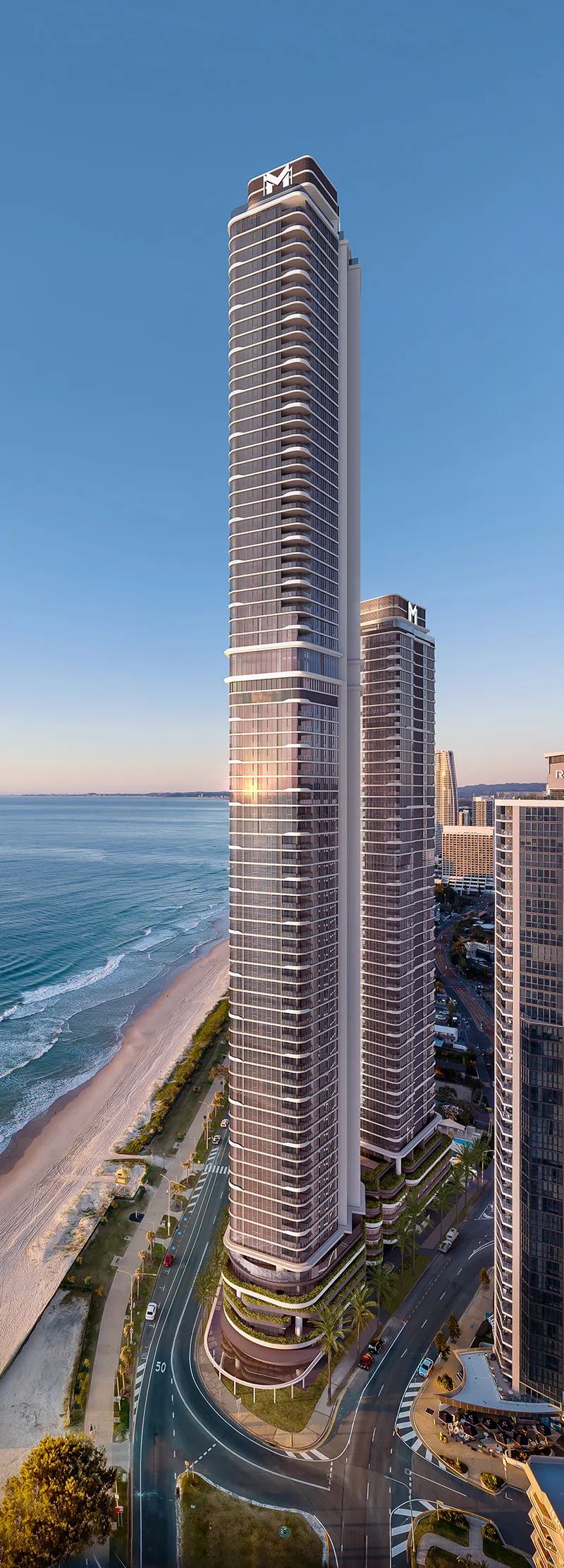 Iconica与SurfersParadise海滩仅一街之隔,两栋高层豪华海景公寓楼高度分别达到51层和77层,是全澳大利亚最高的住宅楼之一。6至24层公寓目前正热销中!